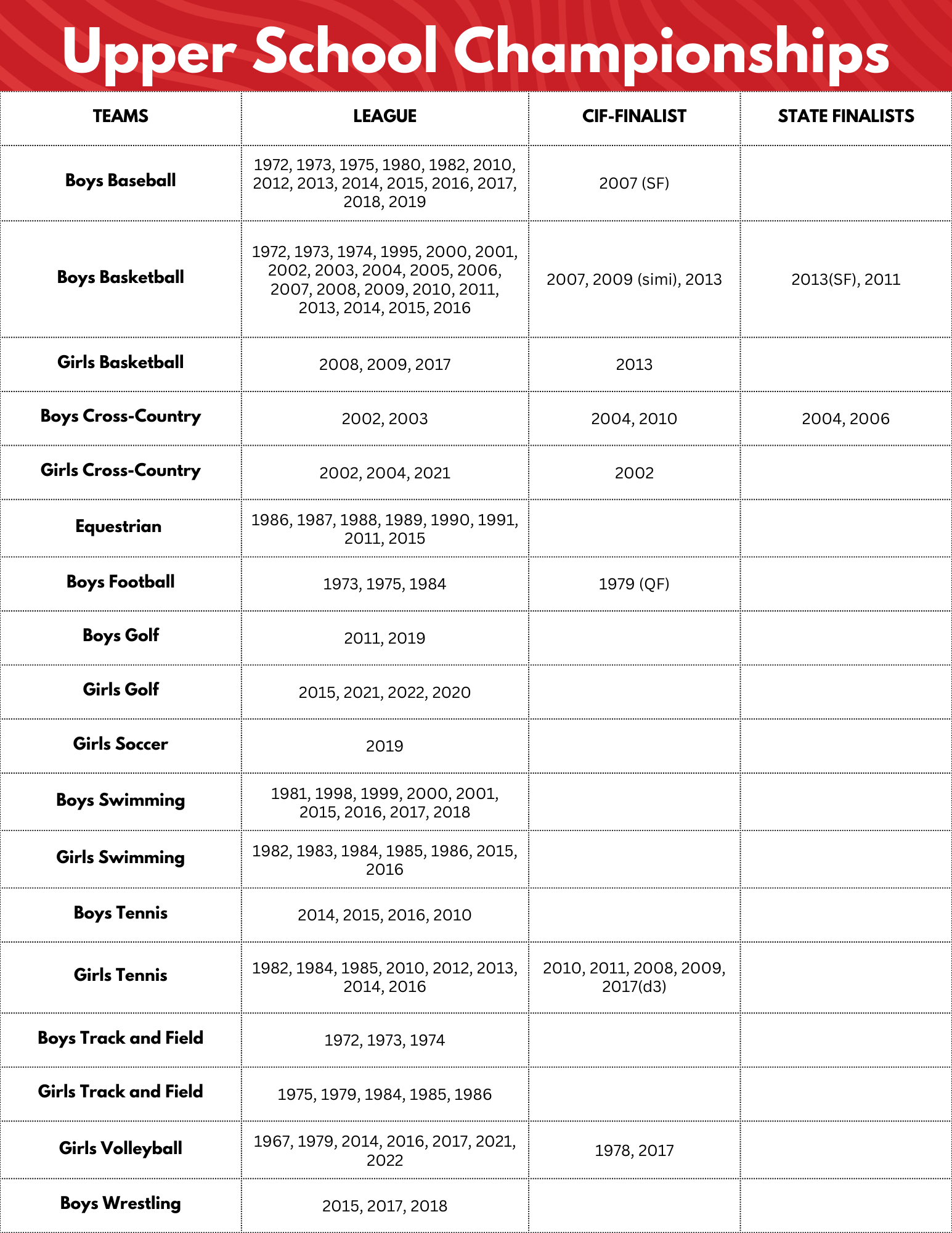 Upper School Teams